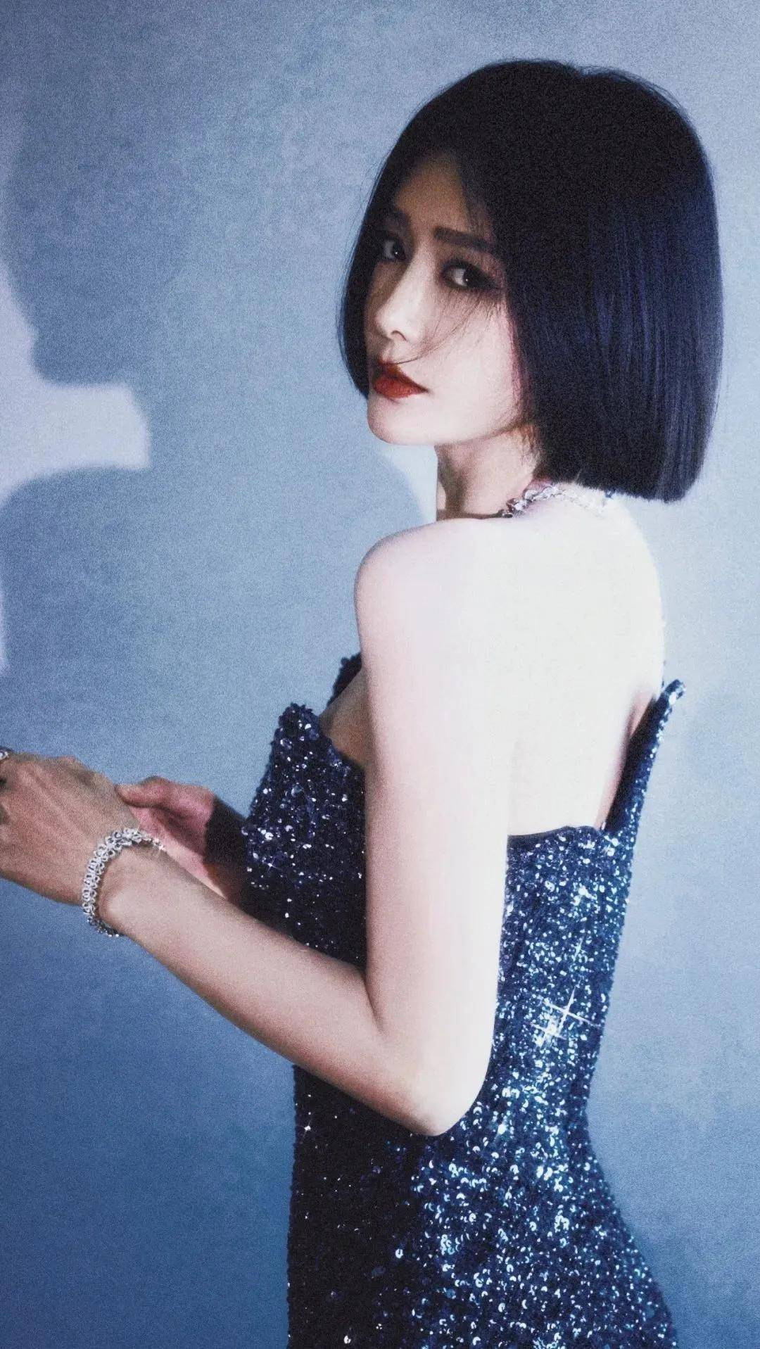 就像这张,秦岚穿着一袭黑色抹胸真空衣裙,她俏脸成熟妩媚,五官精致,短发利落,这位女星站在窗户边上,大秀自己傲人的事业线,绝对性感火辣!